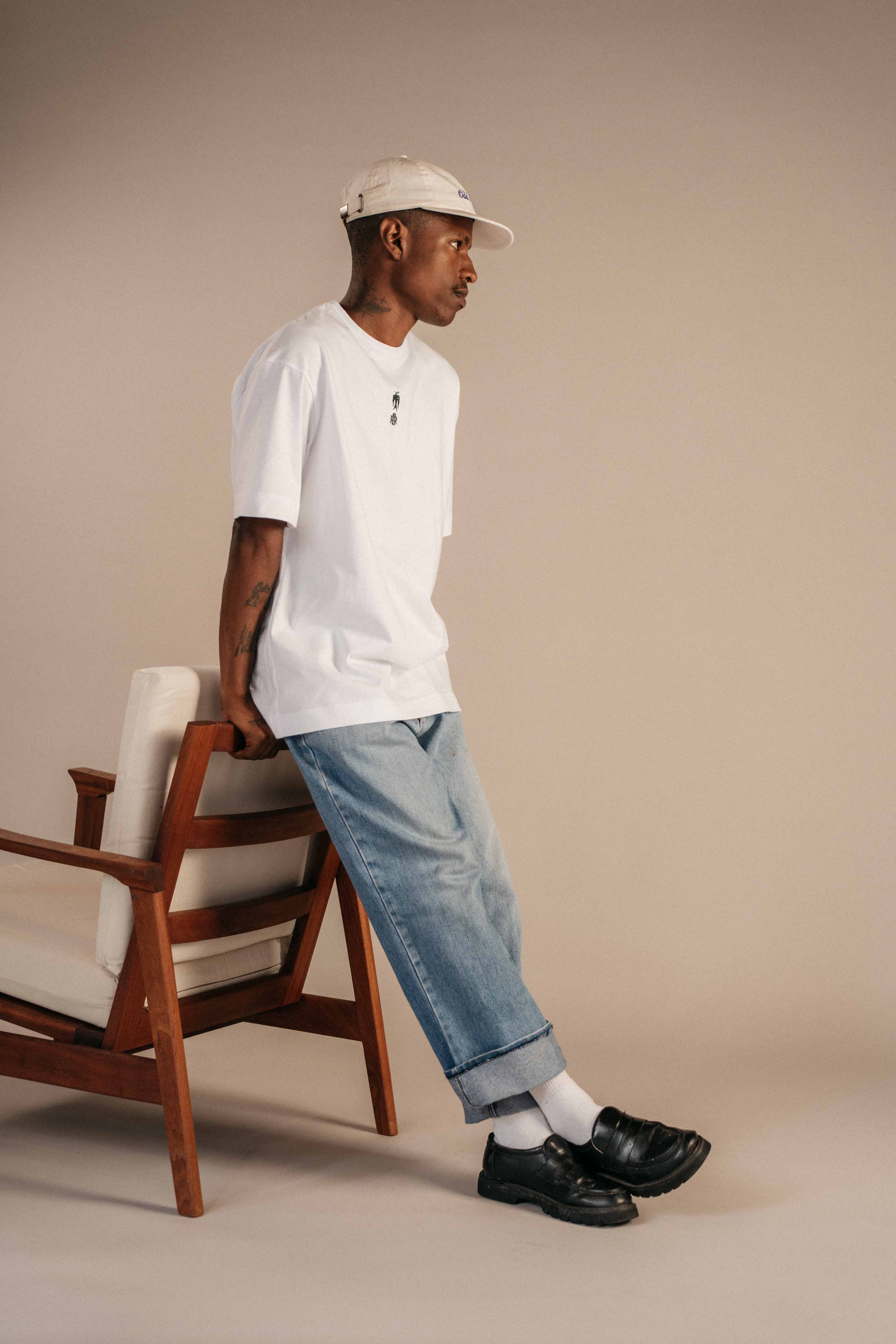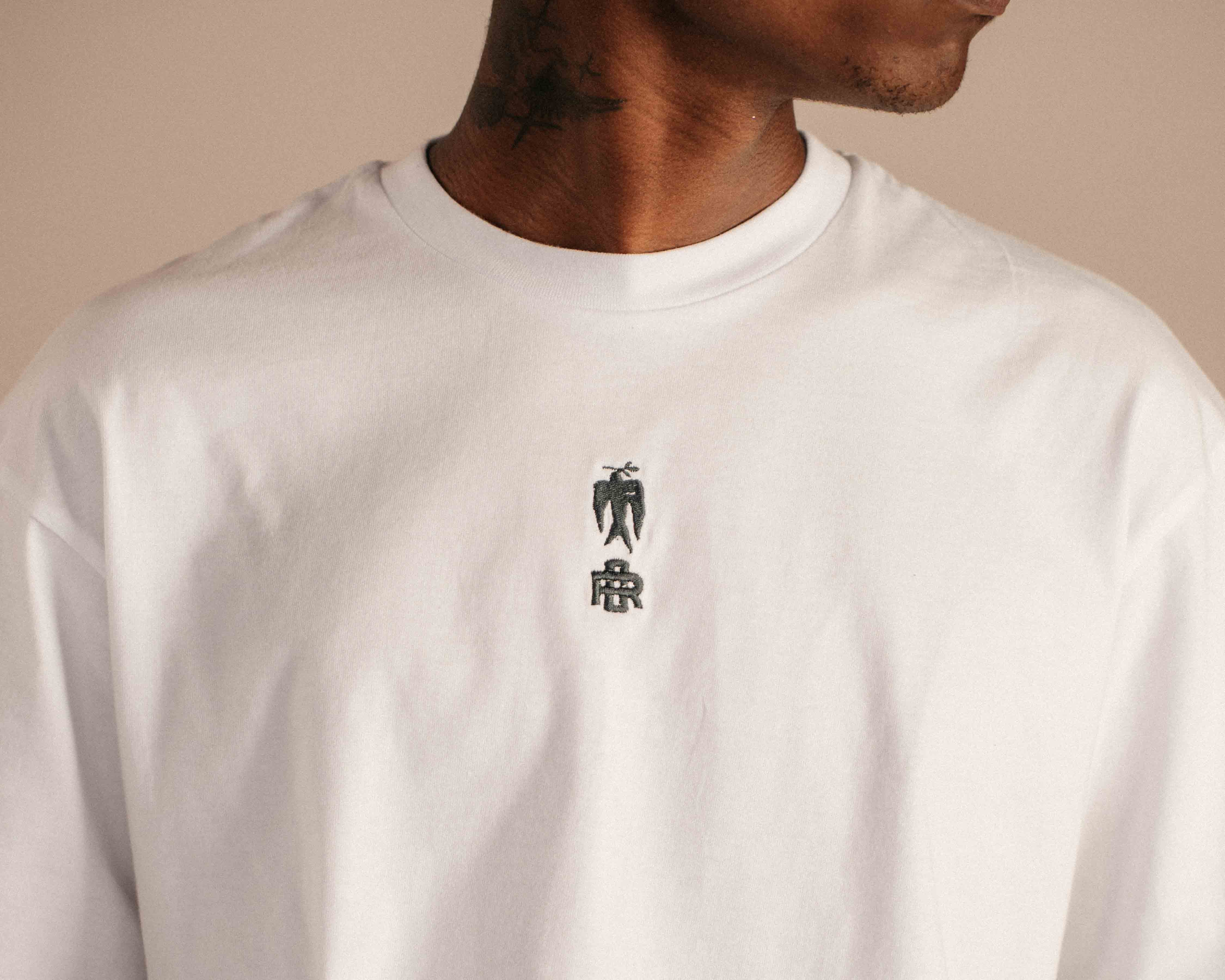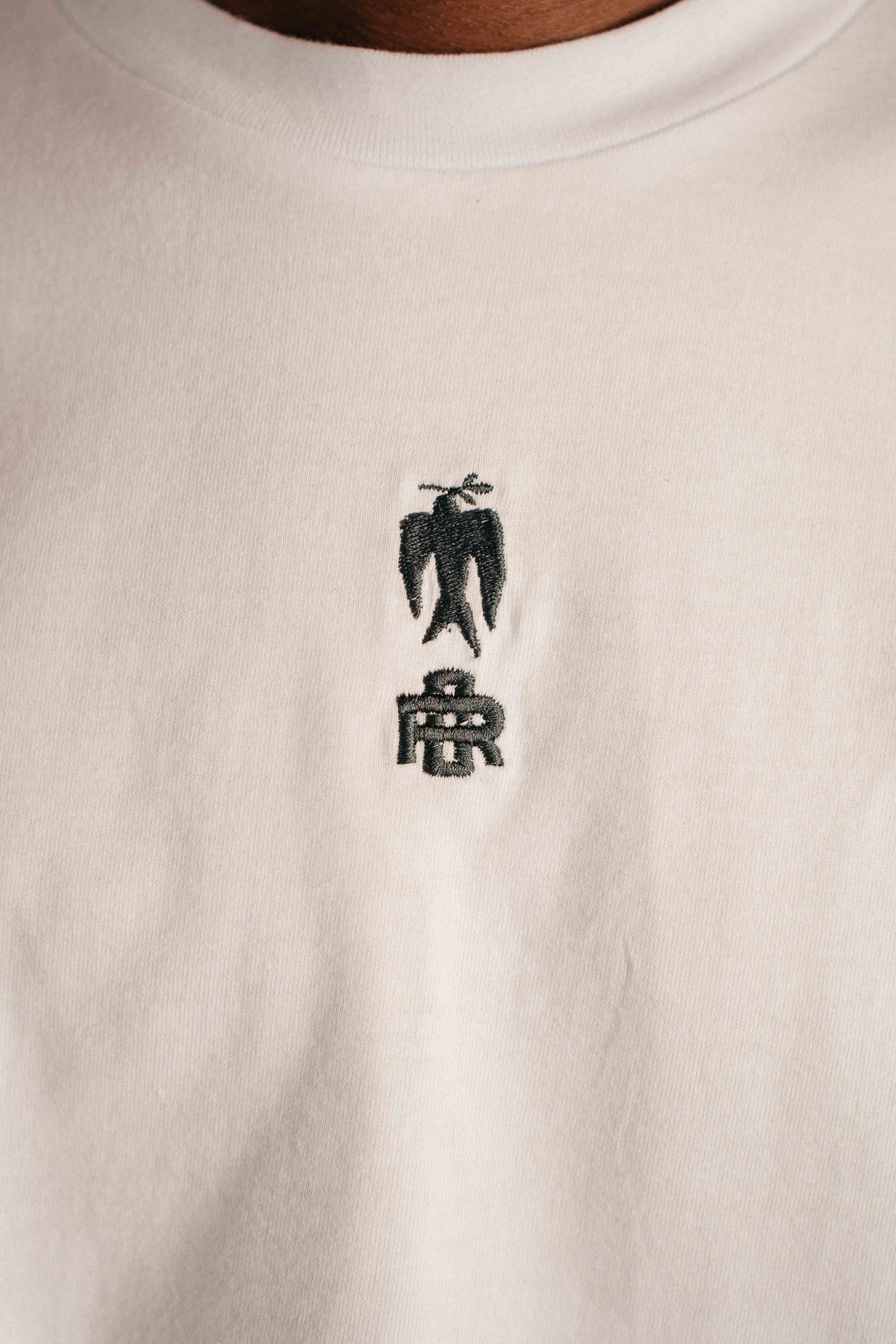 Our newest White T-Shirt, designed with our signature relaxed, boxy fit. The front is kept minimal, finished with a small navy embroidery at the centre of the chest. On the back, a bold graphic anchors the piece — an expression of Odd Ritual’s visual language and cultural intent.